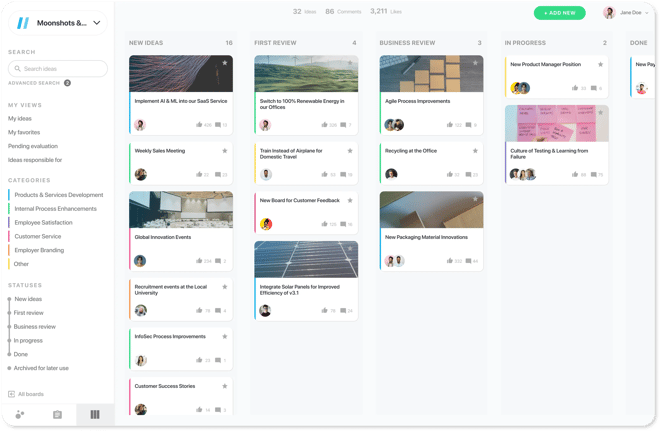 An idea management software serves as the backbone of your idea management process. It is where you’ll collect the ideas, discuss them, evaluate and prioritize them, and keep track of their progress, as well as the strategic direction of your ideation activities.